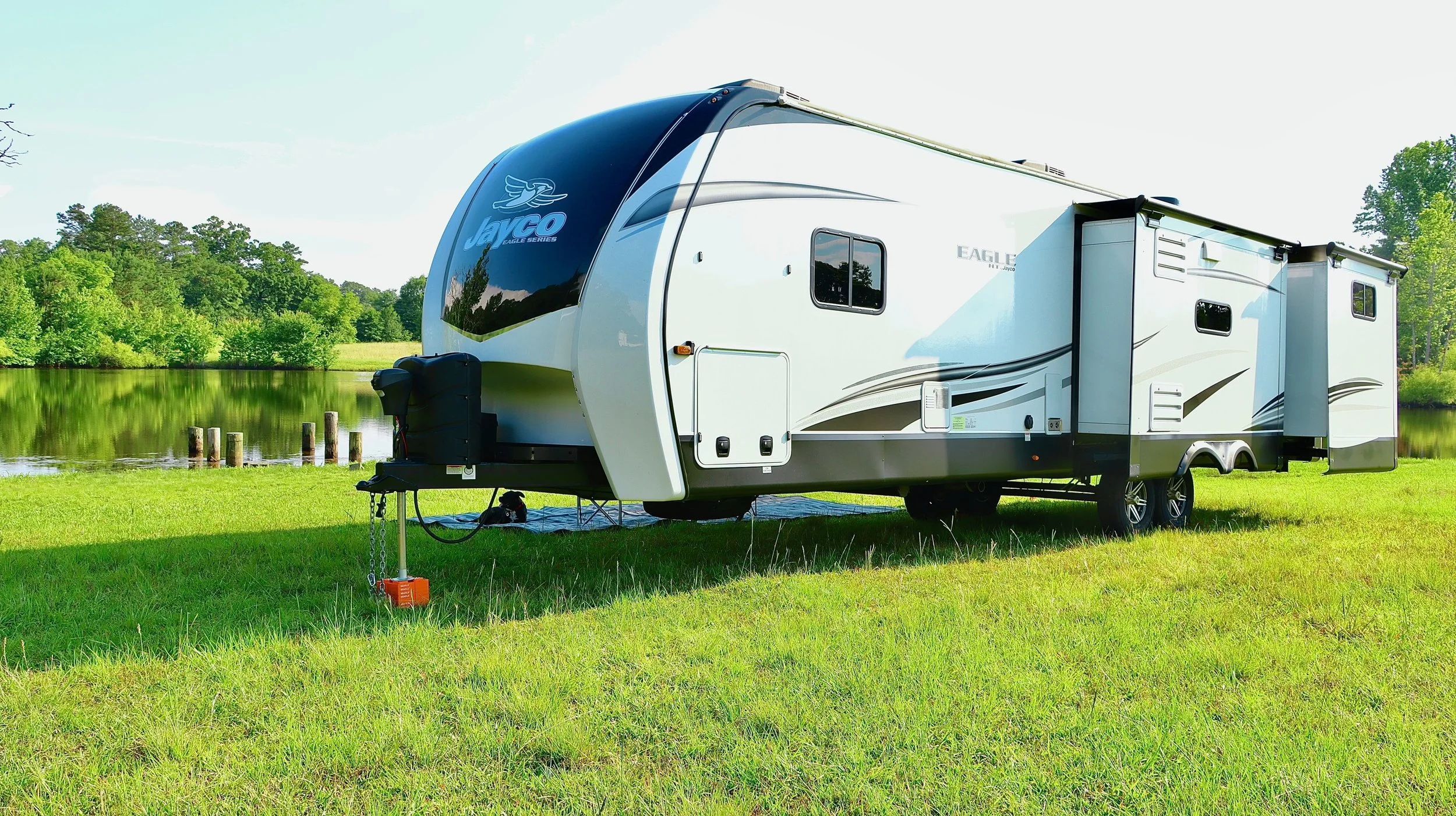 This popular bunkhouse model will feel like home with its spacious interior and eight-person sleeping capacity. The private bunkhouse includes a bunk with a wardrobe underneath, plus a tri-fold sofa with a second bunk above. Mom and Dad will love the front private bedroom with its walk-around queen bed and dual closets for their things. Whip up eggs and bacon in the outside kitchen or use the kitchen island indoors to set out donuts and chocolate milk. The tri-fold sofa sits directly across from the LED HDTV and fireplace for a cozy evening, and the kids can play a game at the booth dinette. Climate Shield zero-degree tested weather protection that includes a fully enclosed and heated underbelly. The industry-exclusive HELIX Cooling System with a 15,000 BTU "Whisper Quiet" A/C system provides a quieter and more efficient system for your comfort. These models include the JAYCOMMAND Smart RV system powered by BMPRO that allows you to control your unit’s functions right from your smartphone or tablet. Inside, you will enjoy the Serta queen mattress with under-bed storage, the bathroom skylight to allow natural light in, a stainless steel kitchen sink, and dual USB charging ports in the kitchen and bedroom so you can keep your gadgets charged and ready to go.